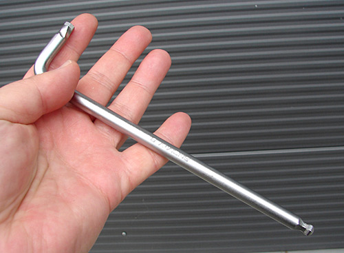 見た目がはほとんど普通のL型HEXレンチと同じですが、先端の加工によって普通の六角を回す事は出来ません。