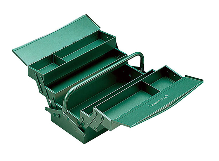 ●両開きの携帯用ツールボックス。